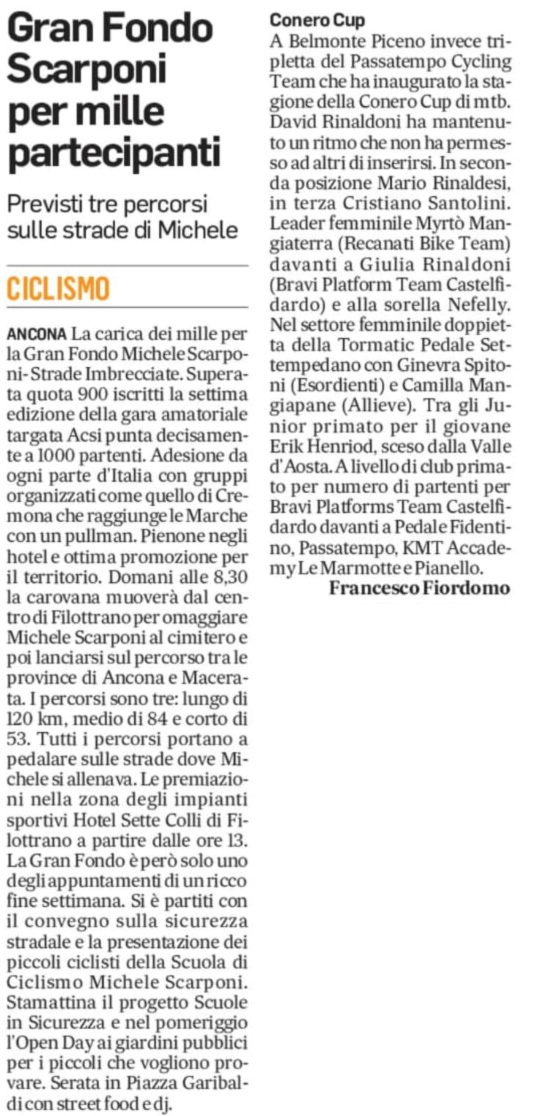 La Conero cup in collaborazione con tutte le Società organizzatrici dei Circuiti Bike Tour Coppa Marche, Conero cup Cross country sostiene la Fondazione Michele Scarponi nel diffondere e promuovere la sicurezza stradale.